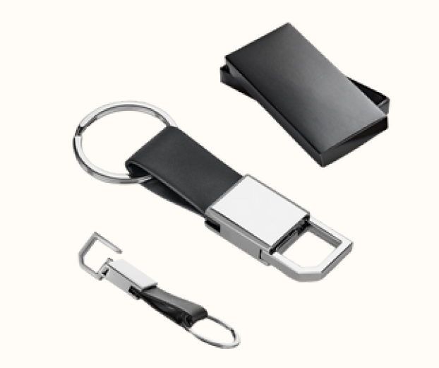 CHAVEIRO EM COURO SINTÉTICO E METAL COM MOSQUETÃO