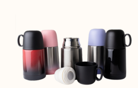 Com acabamento degradê, contém tampa hermética rosqueável com botão de acionamento e tampa externa plástica com alça, podendo ser utilizada como xícara.