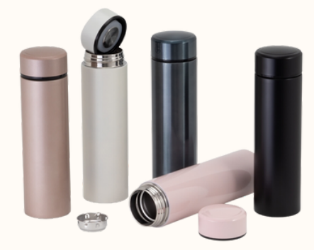Garrafa térmica 500ml feita em aço inoxidável 304, acompanha infusor de bebidas.