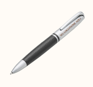 Caneta metalica com detalhes em couro sintético (clips cromados)