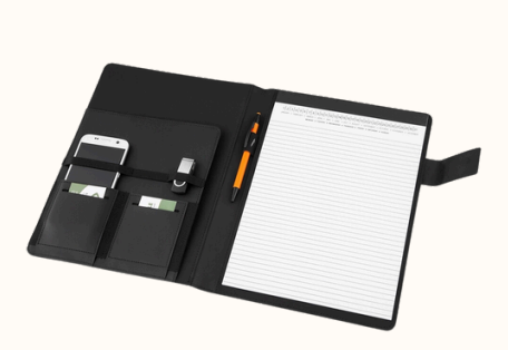 Pasta convenção em tecido sintético, possui fecho magnetizado com plaquinha para personalização em preto fosco.